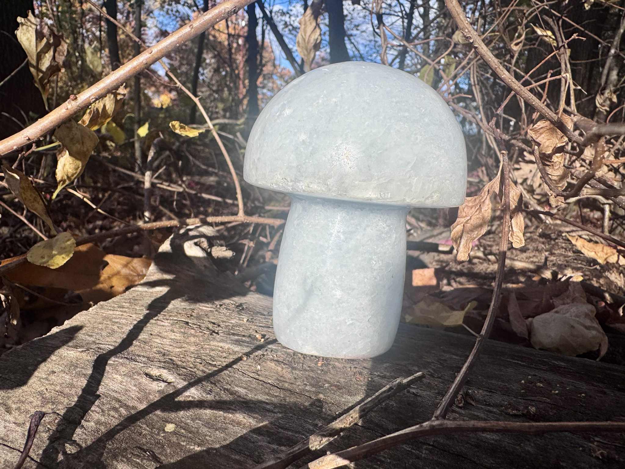 This charming Blue Calcite Mushroom Carving combines the soothing energy of Blue Calcite with the grounding, nature connected symbolism of the mushroom. Blue Calcite is a gentle stone of peace and emotional clarity, helping to calm the mind, ease anxiety, and open the Throat Chakra for honest, compassionate communication.