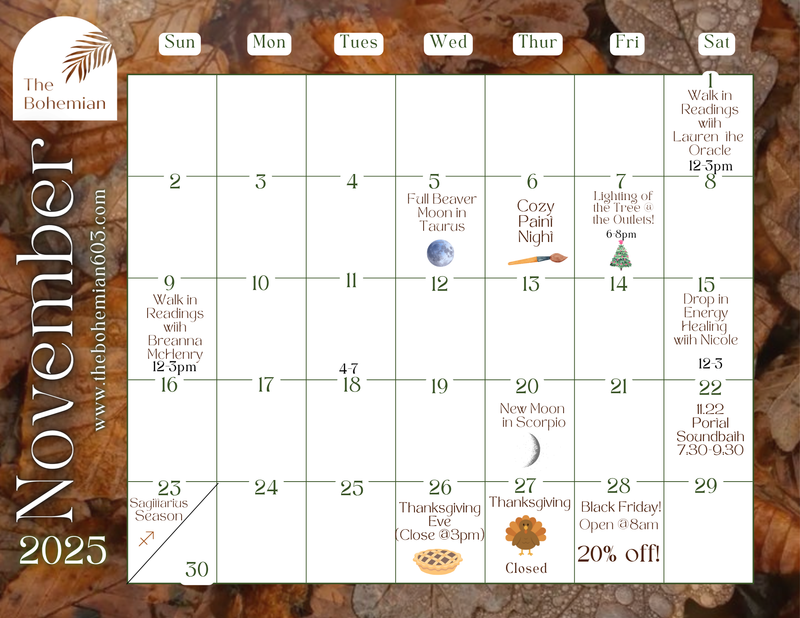 Pop in or reserve a time slot from 12-3 on Saturday November 15th! Nicole will be with us offering her transformative healing sessions using techniques similar to reiki, to help ground and reset your energy.