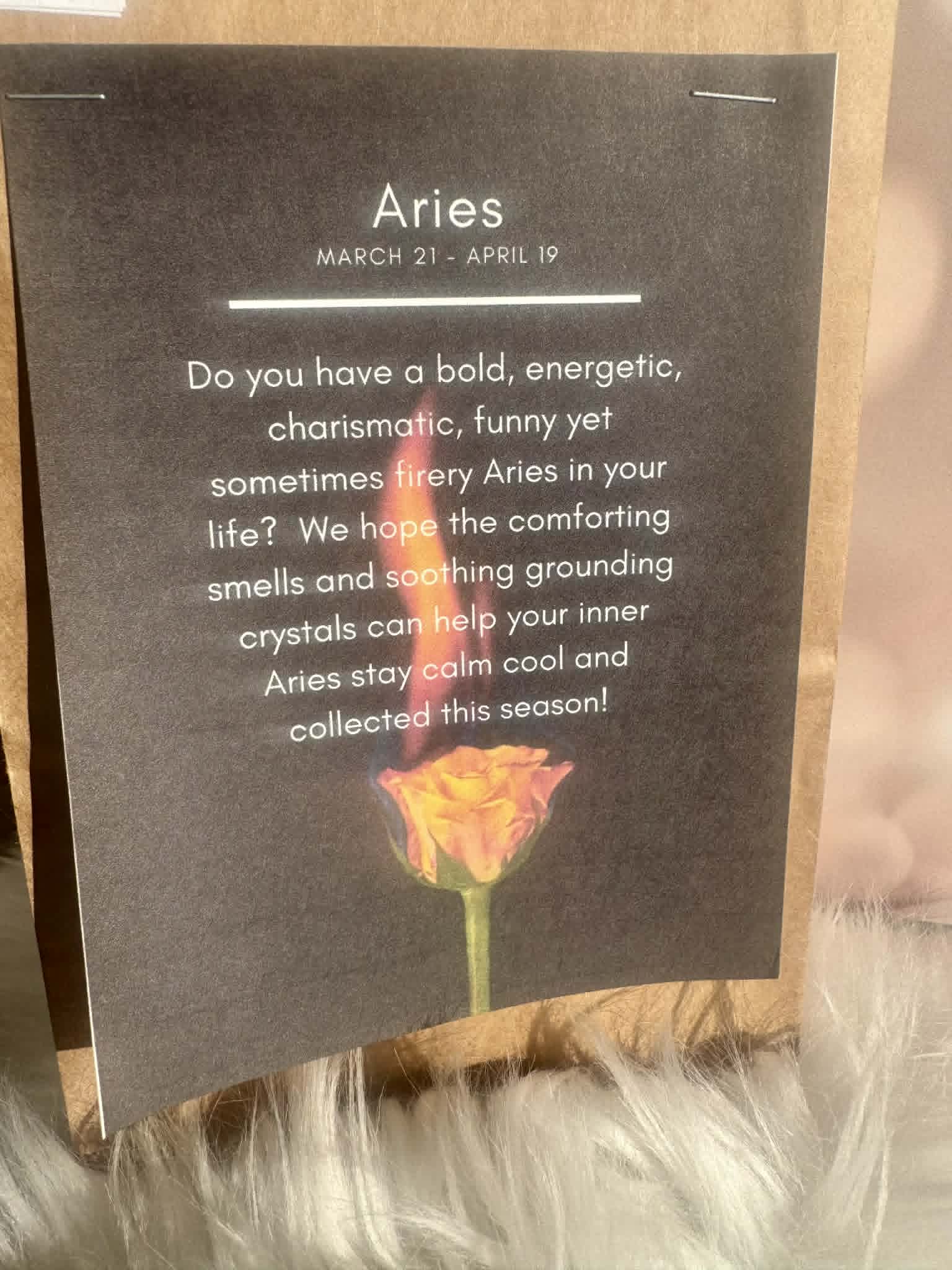Ignite your spark with an Aries Zodiac Grab Bag, intuitively curated to match your bold and unstoppable energy. Each bundle channels your natural fire, filled with handpicked crystals, scents, and surprises that inspire confidence, motivation, and fearless new beginnings. No two bags are alike, just like no two Aries ever are.